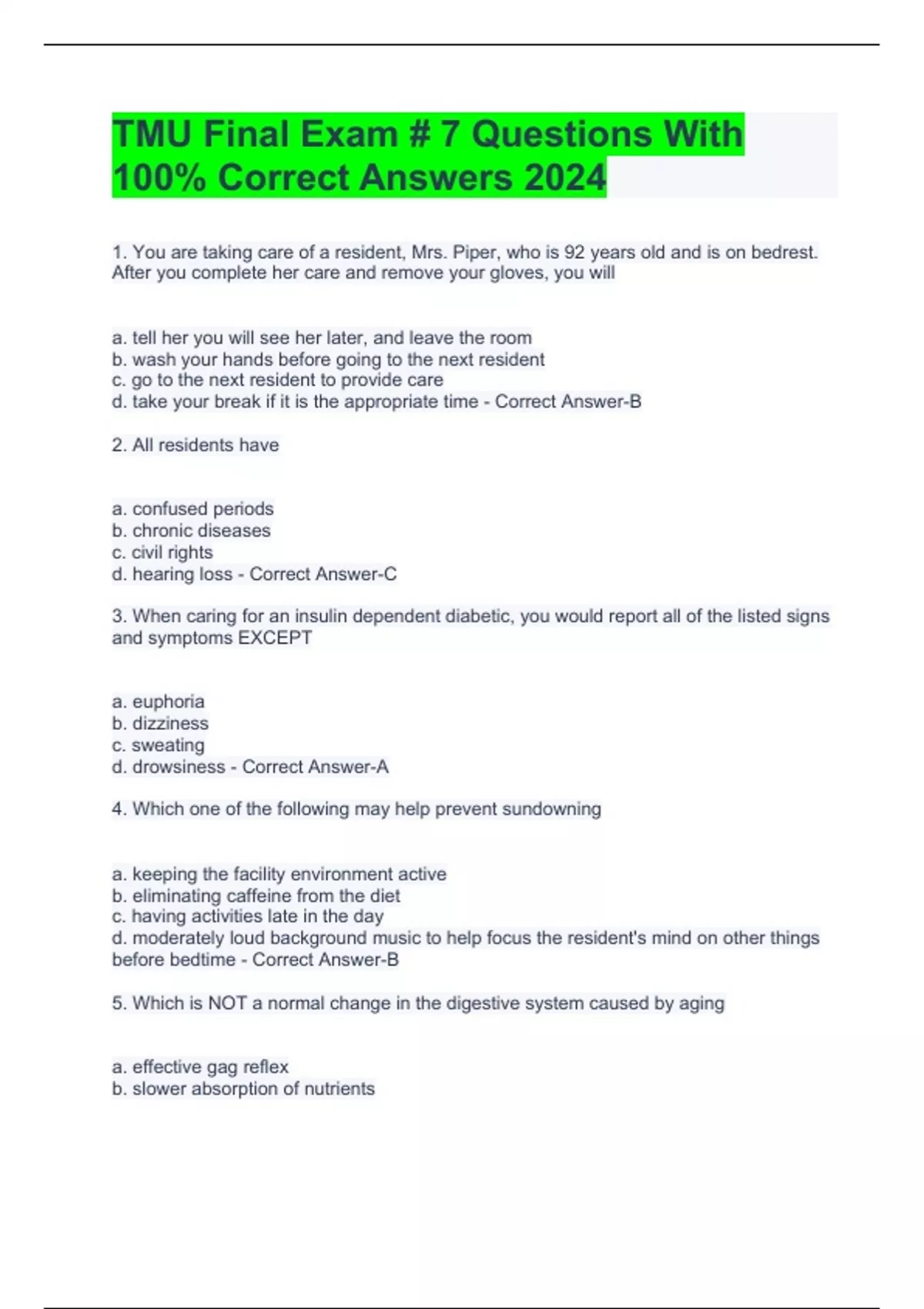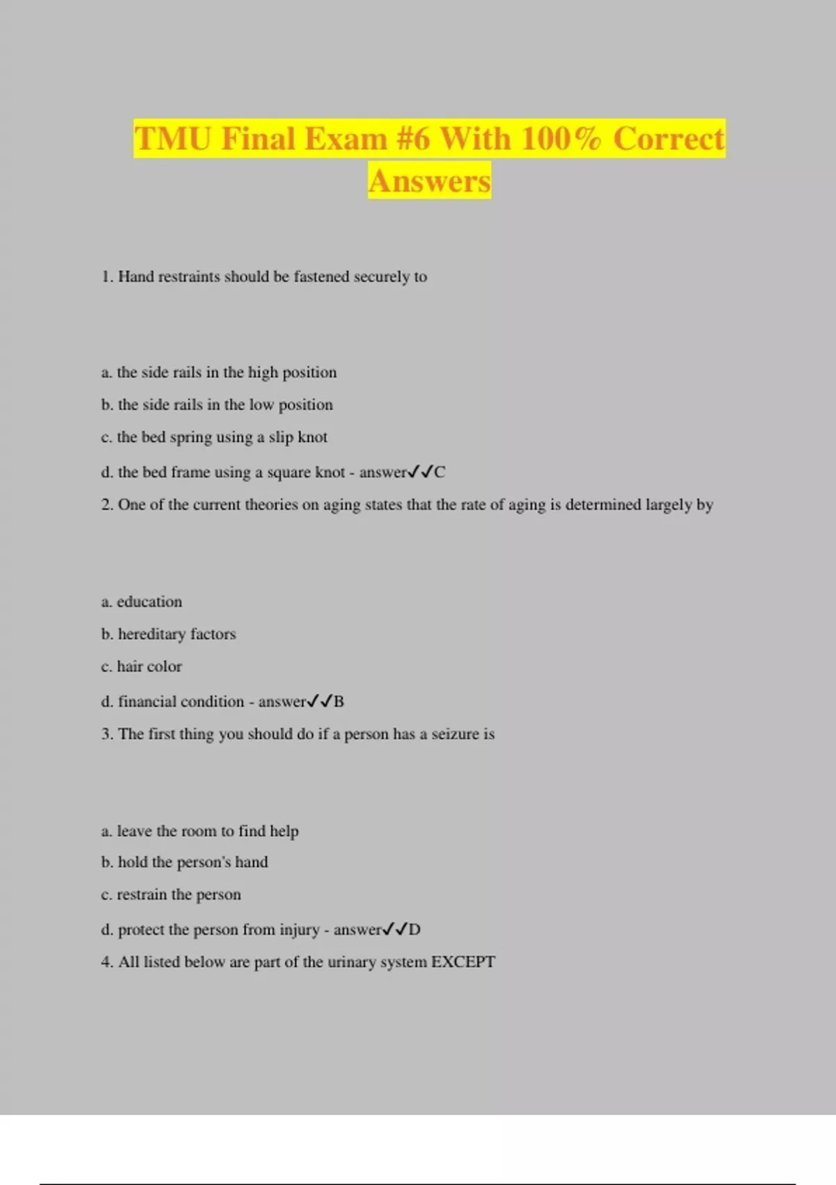 TMU final Exam 2 Test Questions with Correct Answers 2024 Update , Check your course outline, d2l course shell or with your instructor for the date and details of your midterm exams.